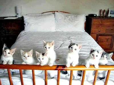 Can you imagine if you tossed a ball of yarn? This is like the ultimate calm before the storm. How in the world did they capture 7 kittens with their paws on the rail all at once?!